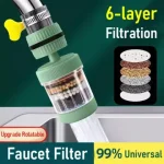 এই ফসেট মাউন্ট ফিল্টারটি ১৬-২৩ মিমি ব্যাসের সাধারণ গোলাকার ফসেটের জন্য উপযুক্ত। এটি কোকোনাট কার্বন, জিওলাইট, এবং পিভিএ ফ্যাব্রিকস দিয়ে তৈরি স্তরিত ফিল্টার প্রযুক্তি ব্যবহার করে, যা পানি থেকে ক্লোরিন, ভারী ধাতু এবং অন্যান্য অশুদ্ধতা দূর করে। গরম পানি ব্যবহার করা সম্ভব (৬০° সি এর মধ্যে)। নরম রাবার উপাদান পানি অপচয় রোধ করে।